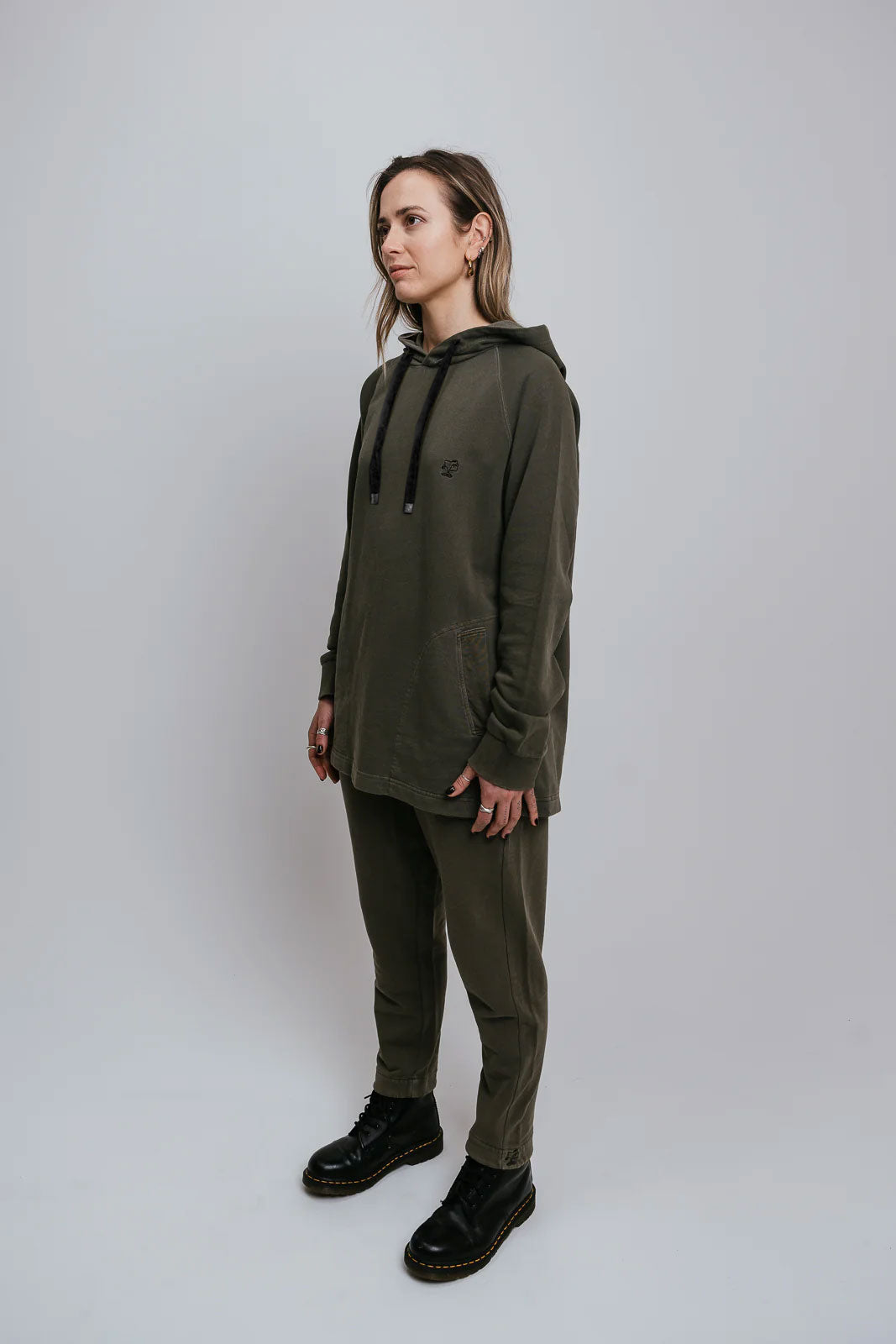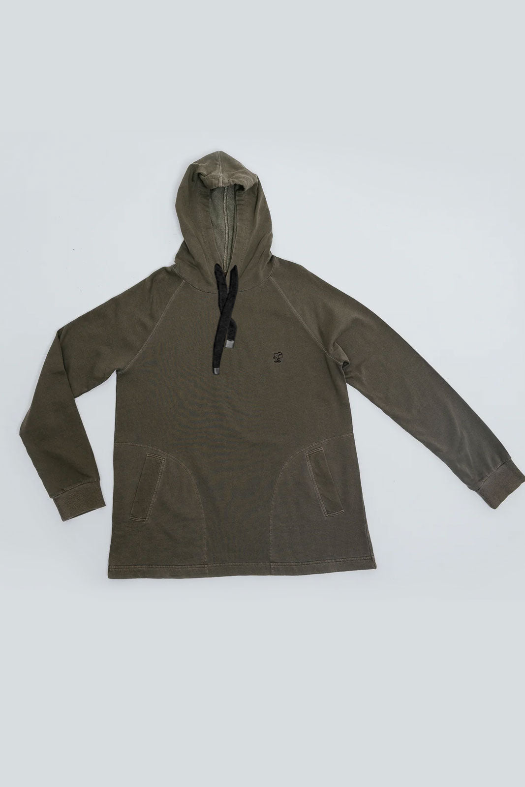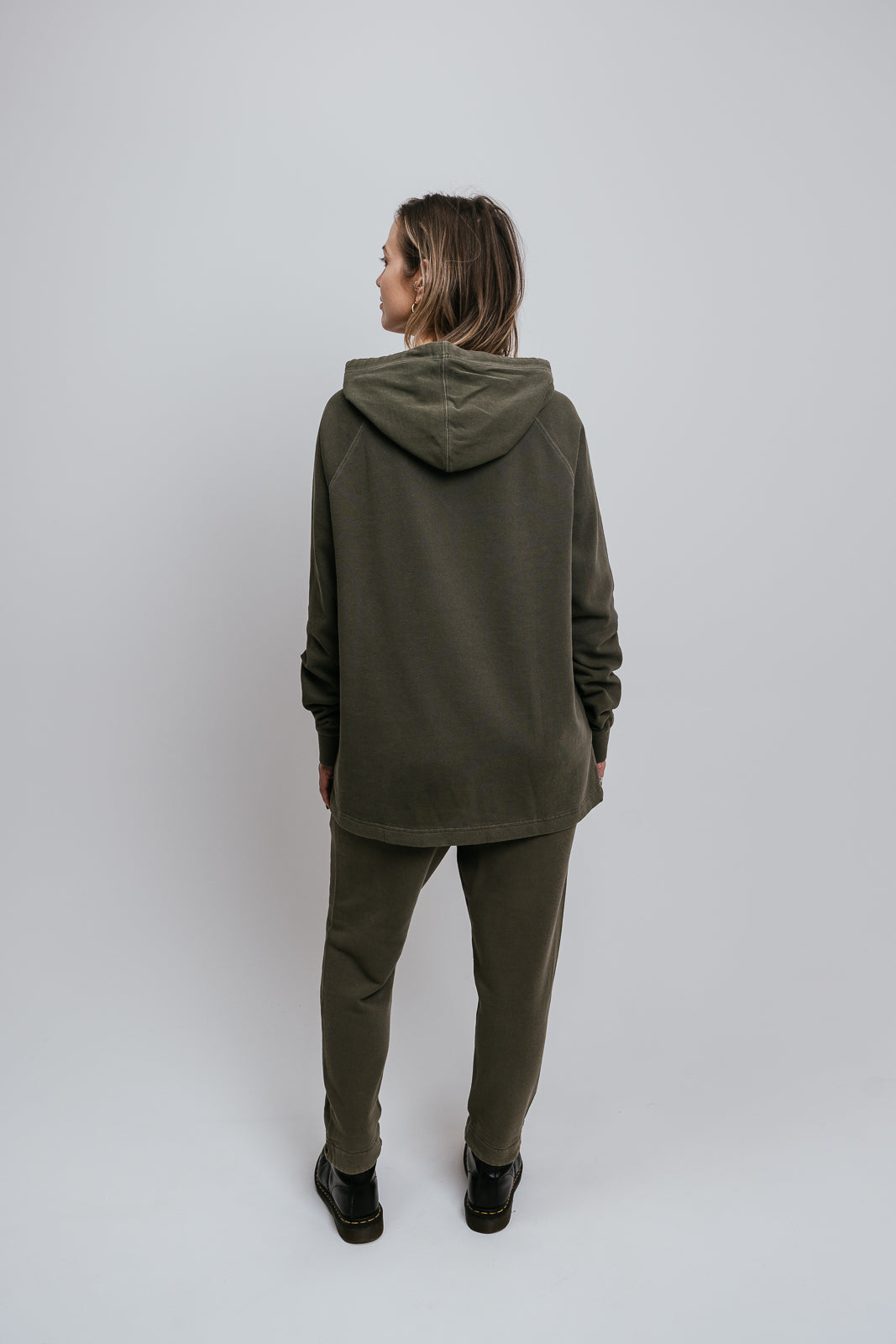 FABRICATION 100% GOTS Organic Cotton. (Global Organic Textile Standard). 300gsm looped back sweat shirting. Each Hoodie is garment dyed in shade of Kelp that not only speaks to your individuality but also champions responsible fashion
