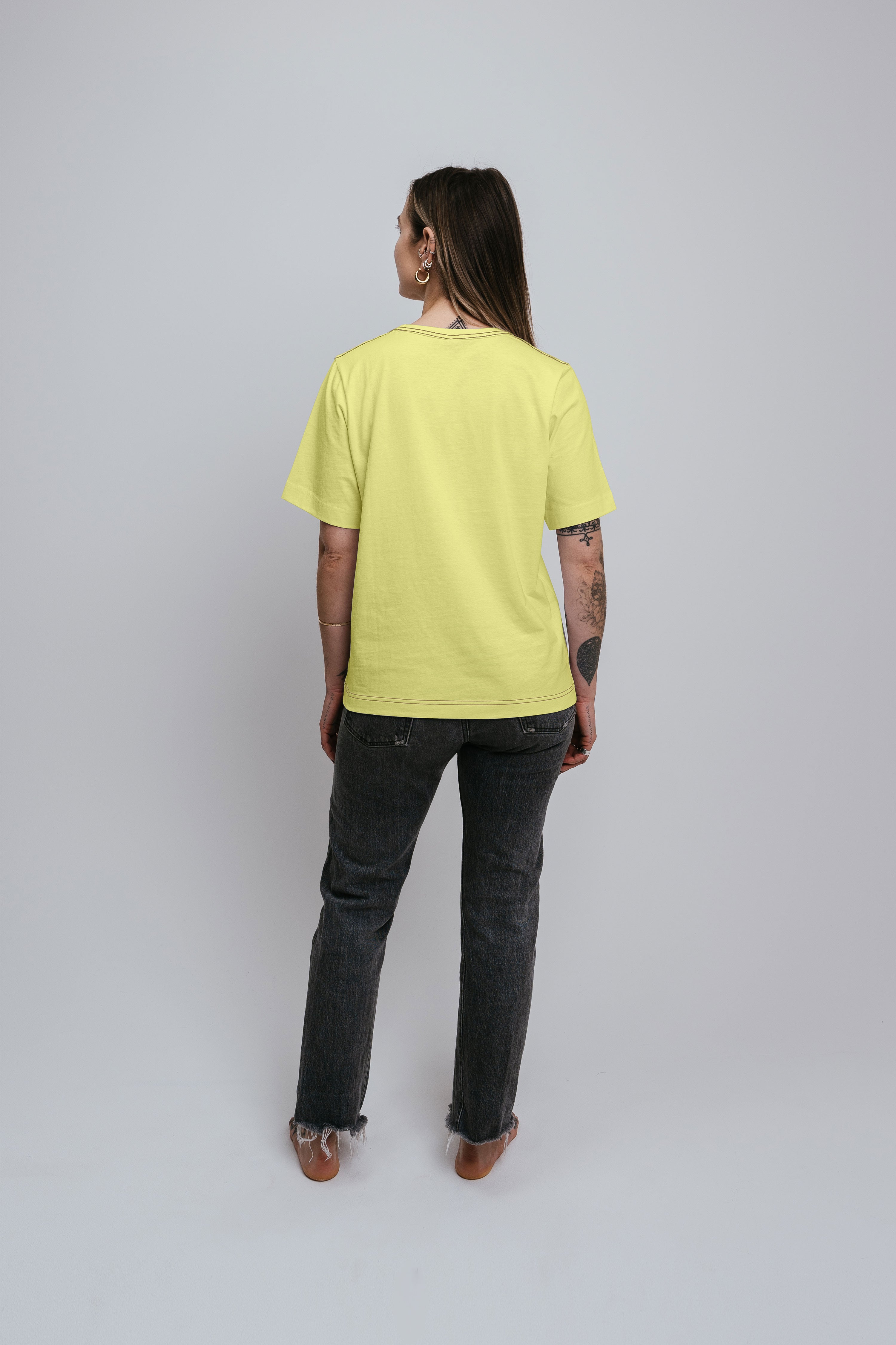 FIT  Amelia is a size 10 and wearing a small, she is 165cm tall. This is the more fitted Tee.