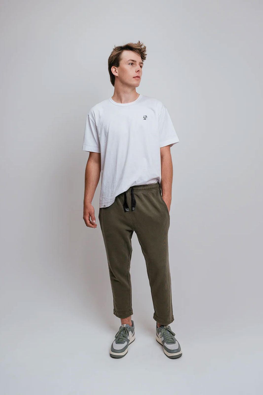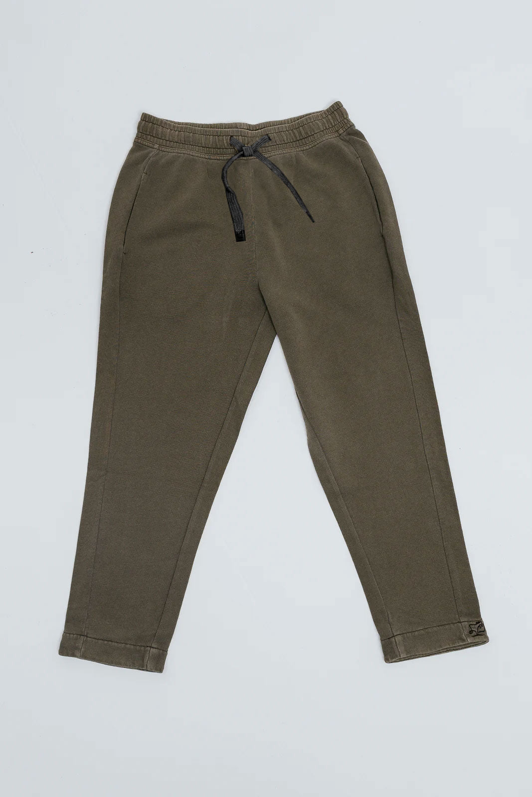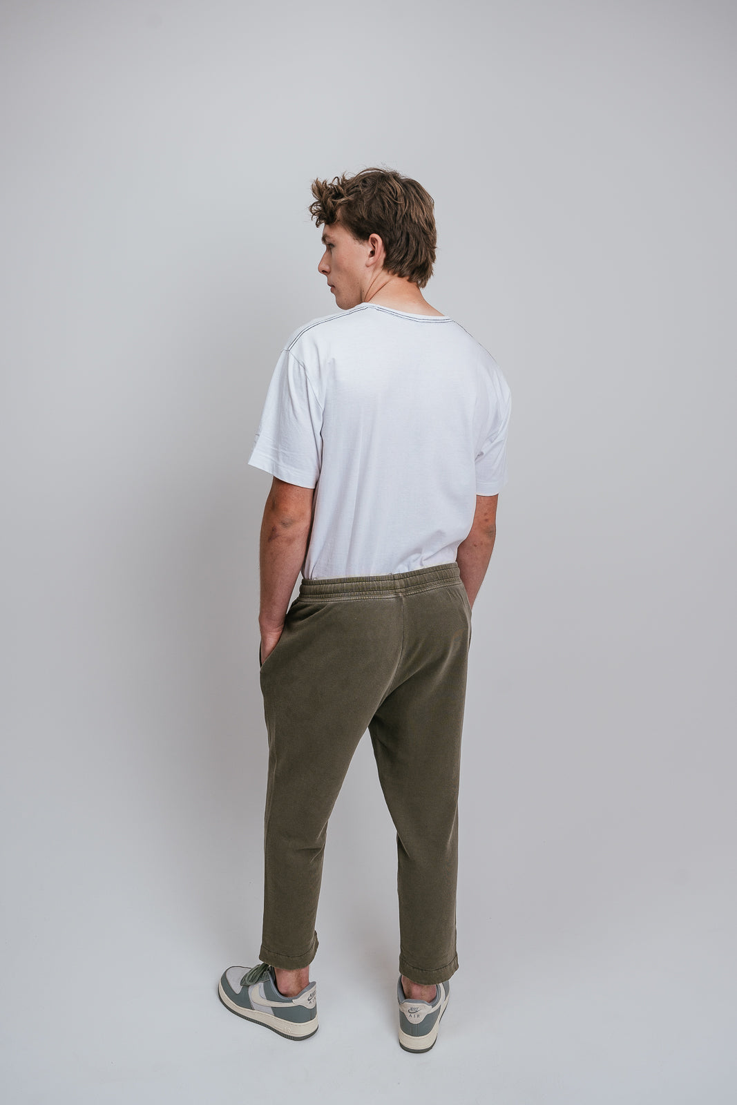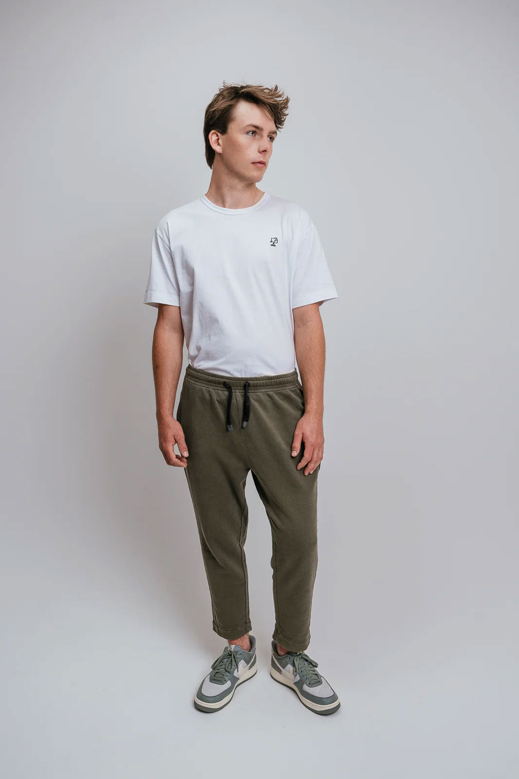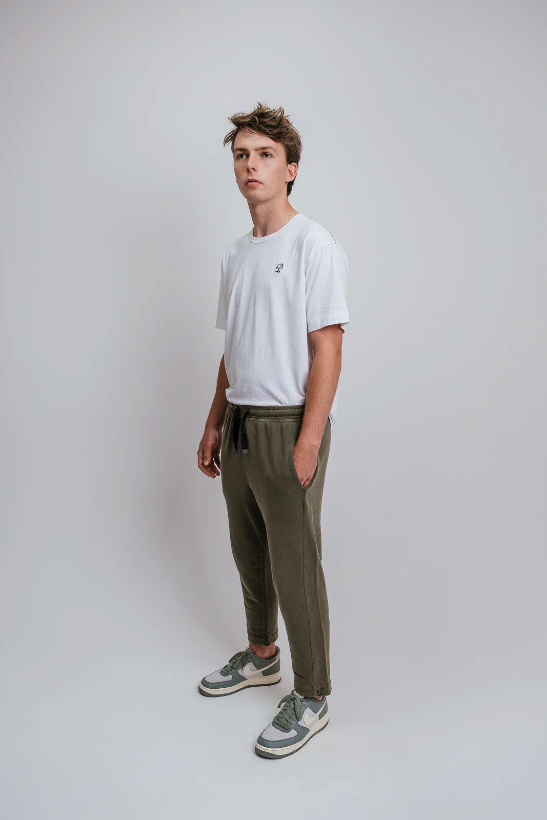 FABRICATION 100% GOTS Organic Cotton. (Global Organic Textile Standard). 300gsm looped back sweat shirting. Each pair is garment dyed in shade of kelp that not only speaks to your individuality but also champions responsible fashion
