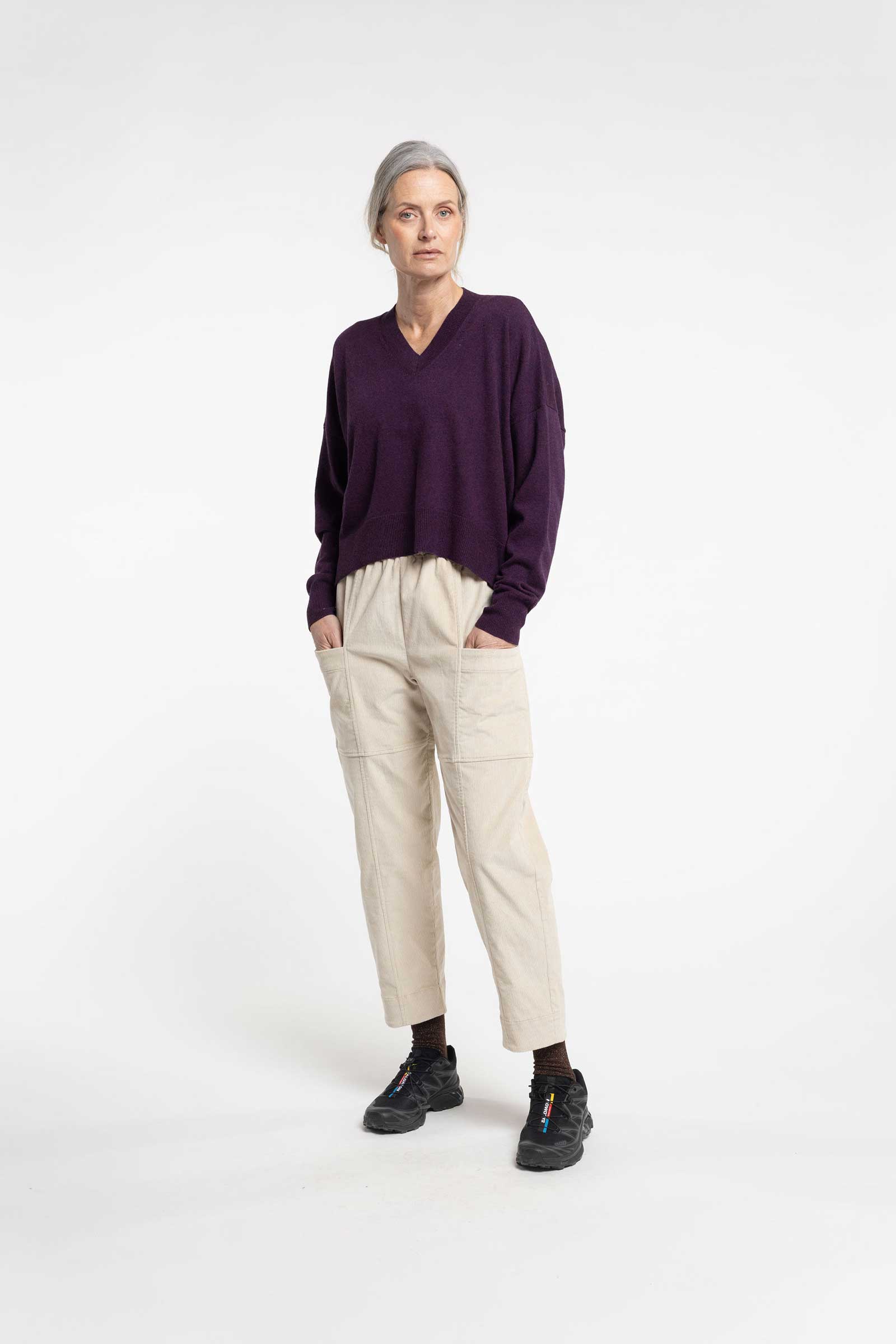 An elasticated waistband offers all-day comfort while maintaining a neat silhouette, complemented by practical patch pockets and considered seam detailing that adds subtle structure and interest. The easy fit makes them a versatile wardrobe staple, equally suited to casual styling with sneakers or dressed up with boots and layering pieces.